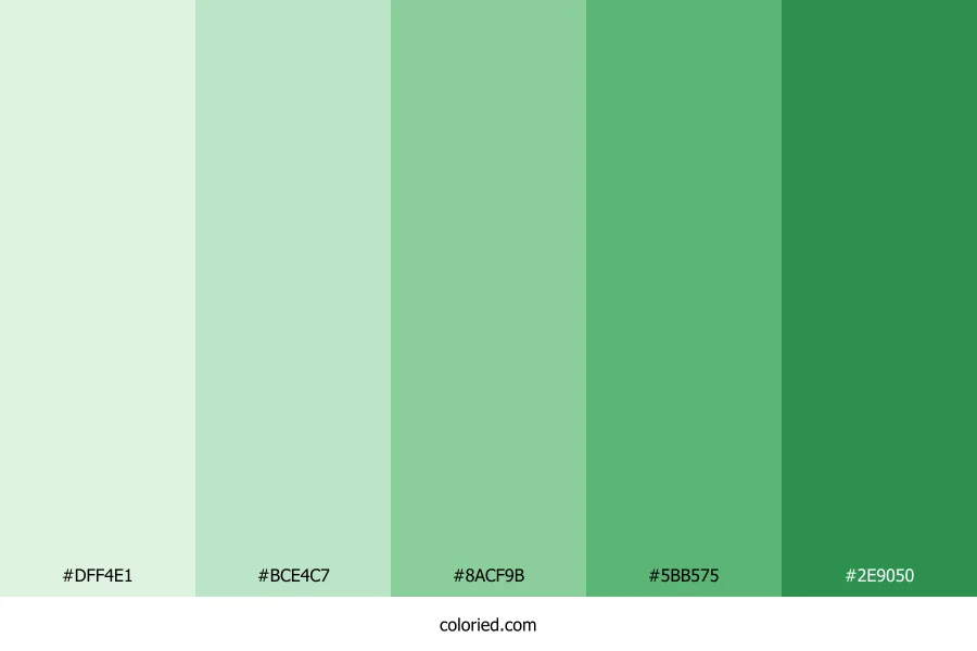 ![]() | #DFF4E1 | 223, 244, 225 | 126, 49%, 92% | 9%, 0%, 8%, 4% | oklch(0.947 0.034 148) |