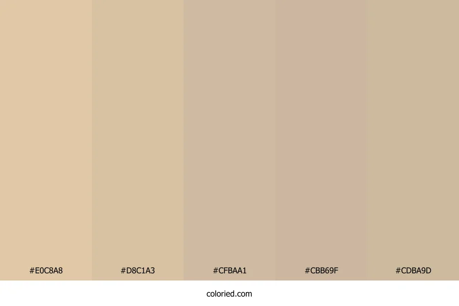 | #CDBA9D | 205, 186, 157 | 36, 32%, 71% | 0%, 9%, 23%, 20% | oklch(0.797 0.045 78) |