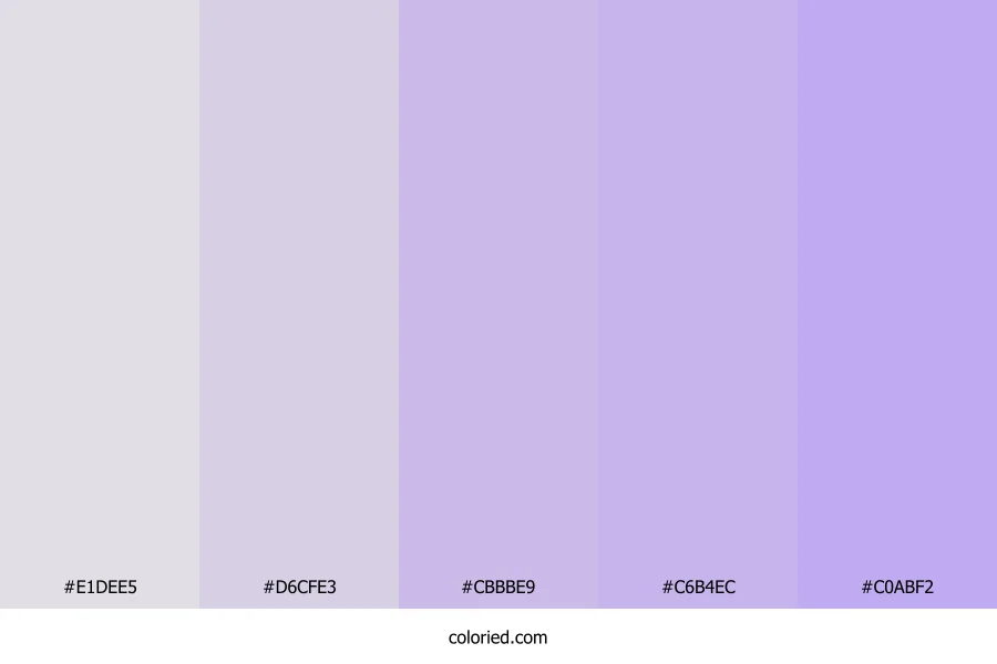 ![]() | #E1DEE5 | 225, 222, 229 | 266, 12%, 88% | 2%, 3%, 0%, 10% | oklch(0.905 0.010 305) |