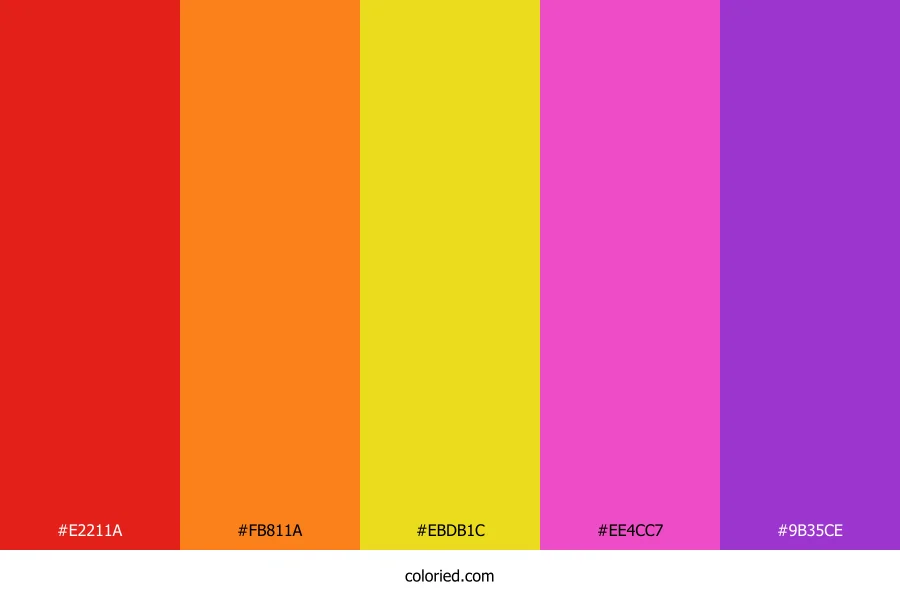 ![]() | #E2211A | 226, 33, 26 | 2, 79%, 49% | 0%, 85%, 88%, 11% | oklch(0.584 0.224 29) |