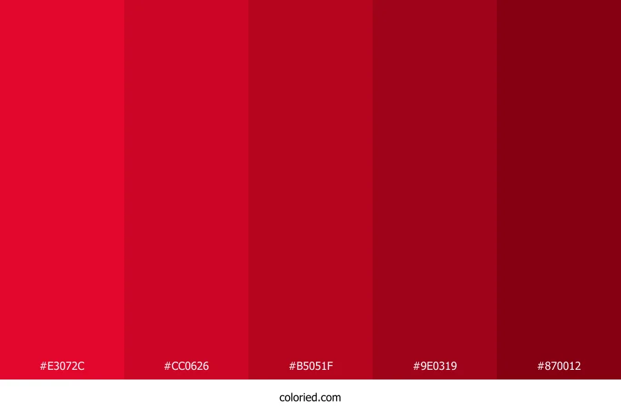 ![]() | #E3072C | 227, 7, 44 | 350, 94%, 46% | 0%, 97%, 81%, 11% | oklch(0.579 0.232 24) |