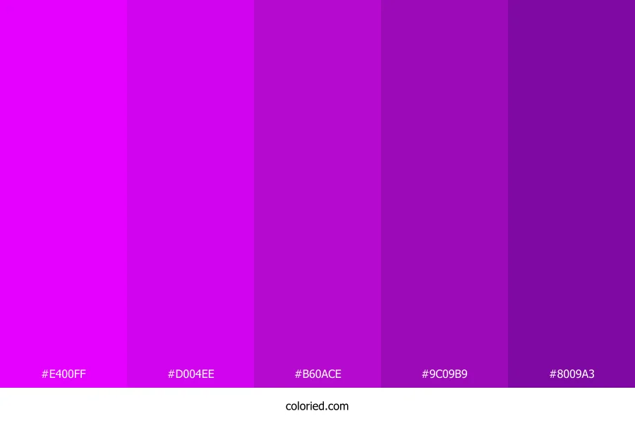 | #D004EE | 208, 4, 238 | 292, 97%, 47% | 13%, 98%, 0%, 7% | oklch(0.622 0.295 321) | |