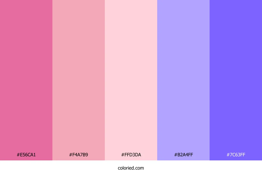 | #B2A4FF | 178, 164, 255 | 249, 100%, 82% | 30%, 36%, 0%, 0% | oklch(0.766 0.129 290) | |