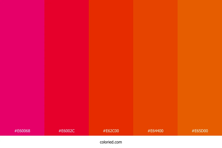 | #E62C00 | 230, 44, 0 | 11, 100%, 45% | 0%, 81%, 100%, 10% | oklch(0.597 0.223 32) | |