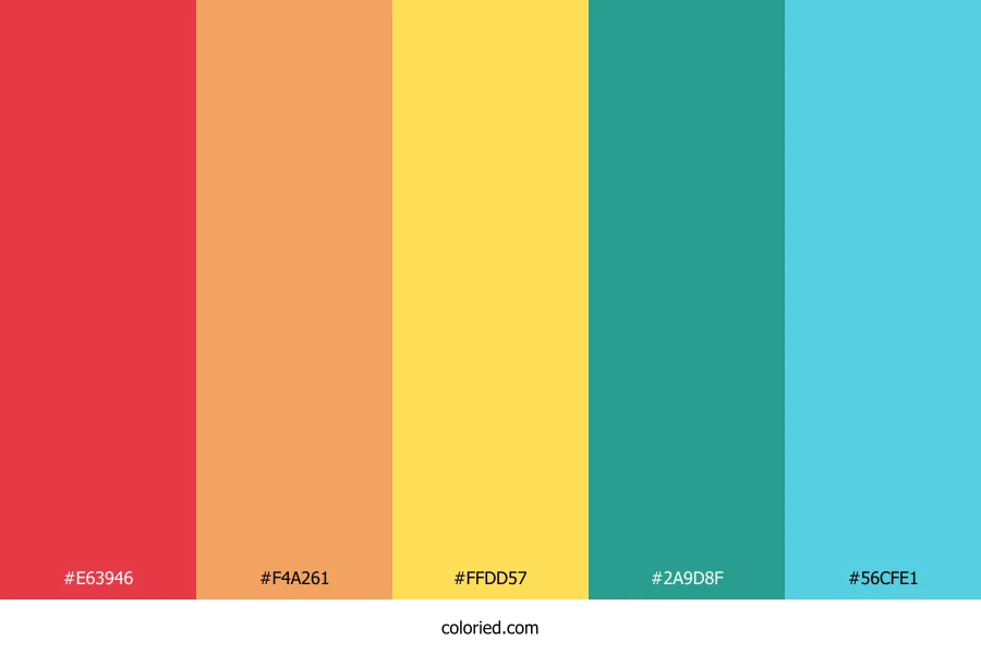 ![]() | #E63946 | 230, 57, 70 | 355, 78%, 56% | 0%, 75%, 70%, 10% | oklch(0.612 0.208 22) |