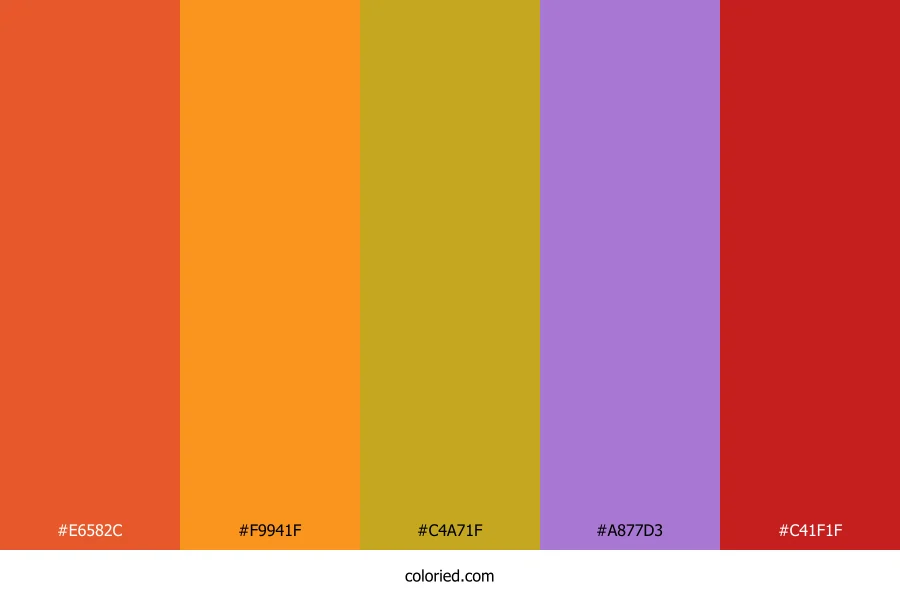 ![]() | #E6582C | 230, 88, 44 | 14, 79%, 54% | 0%, 62%, 81%, 10% | oklch(0.641 0.185 37) |