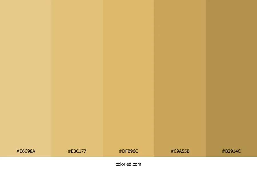 | #E0C177 | 224, 193, 119 | 42, 63%, 67% | 0%, 14%, 47%, 12% | oklch(0.822 0.100 87) | |