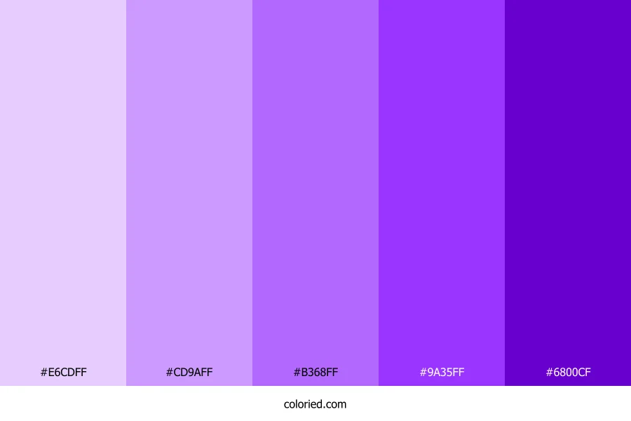 | #CD9AFF | 205, 154, 255 | 270, 100%, 80% | 20%, 40%, 0%, 0% | oklch(0.772 0.149 306) | |