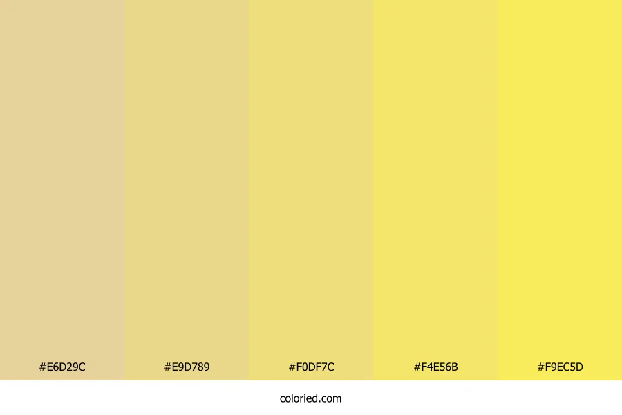 | #E9D789 | 233, 215, 137 | 49, 69%, 73% | 0%, 8%, 41%, 9% | oklch(0.877 0.100 97) | |