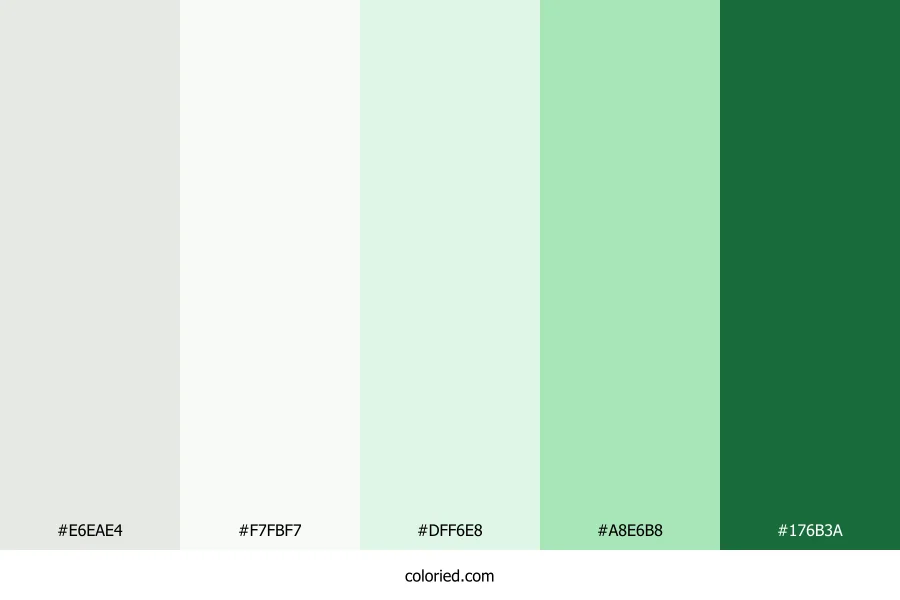 | #DFF6E8 | 223, 246, 232 | 143, 56%, 92% | 9%, 0%, 6%, 4% | oklch(0.952 0.030 159) | |