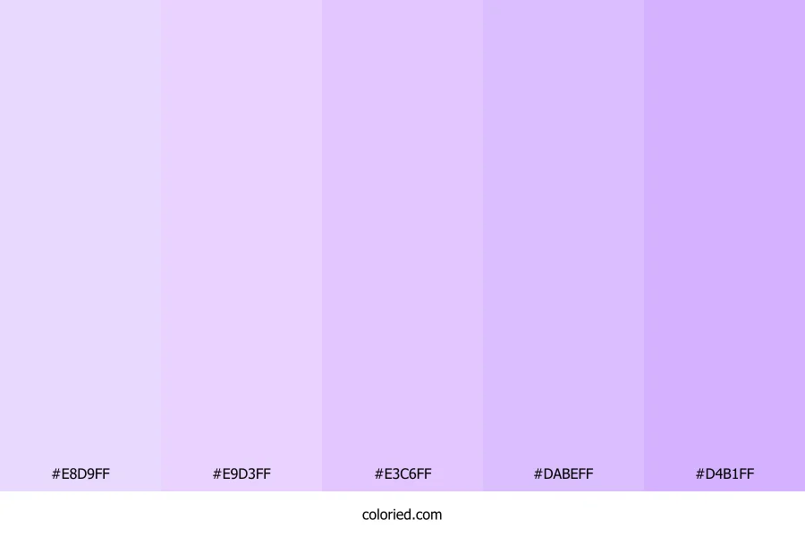![]() | #E8D9FF | 232, 217, 255 | 264, 100%, 93% | 9%, 15%, 0%, 0% | oklch(0.909 0.054 303) |