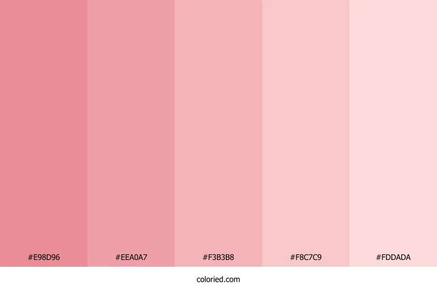![]() | #E98D96 | 233, 141, 150 | 354, 68%, 73% | 0%, 39%, 36%, 9% | oklch(0.742 0.112 14) |