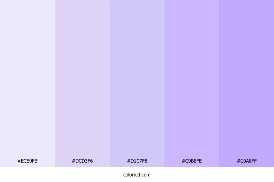 | #C9B8FE | 201, 184, 254 | 255, 97%, 86% | 21%, 28%, 0%, 0% | oklch(0.821 0.099 295) | |