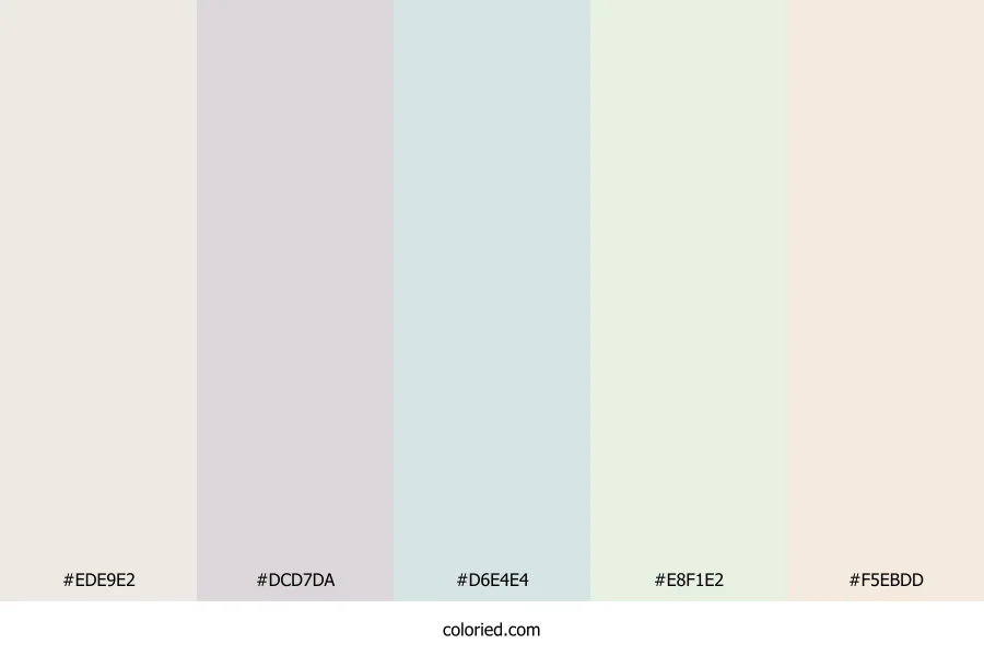![]() | #EDE9E2 | 237, 233, 226 | 38, 23%, 91% | 0%, 2%, 5%, 7% | oklch(0.935 0.010 82) |