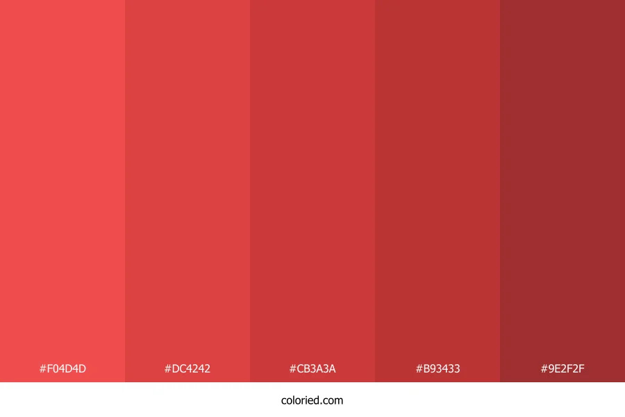 | #9E2F2F | 158, 47, 47 | 0, 54%, 40% | 0%, 70%, 70%, 38% | oklch(0.474 0.147 25) |