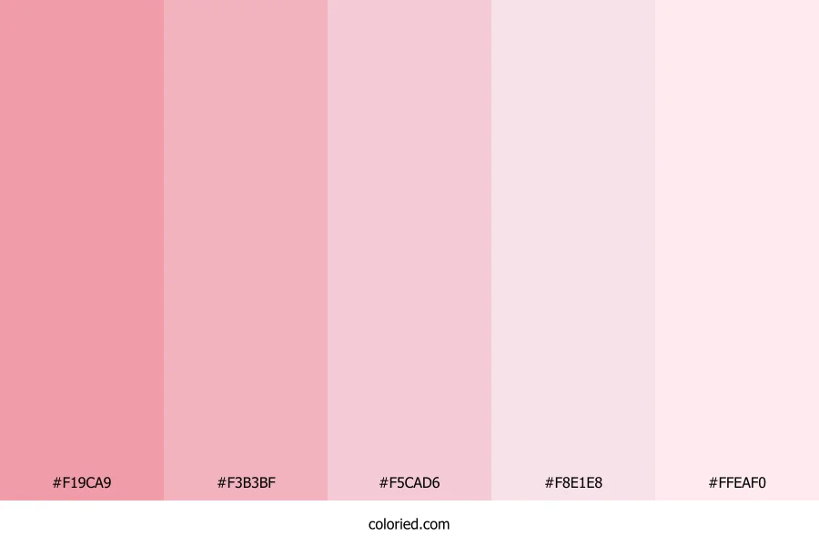 ![]() | #F19CA9 | 241, 156, 169 | 351, 75%, 78% | 0%, 35%, 30%, 5% | oklch(0.781 0.103 10) |