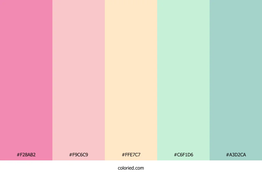 | #F9C6C9 | 249, 198, 201 | 356, 81%, 88% | 0%, 20%, 19%, 2% | oklch(0.872 0.058 14) | |