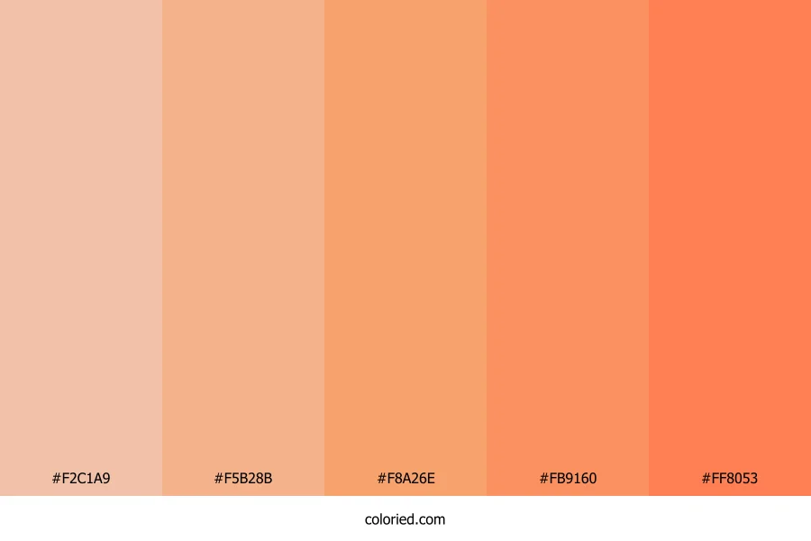 ![]() | #F2C1A9 | 242, 193, 169 | 20, 74%, 81% | 0%, 20%, 30%, 5% | oklch(0.848 0.065 47) |