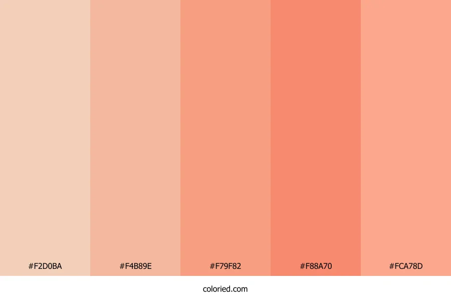 | #F79F82 | 247, 159, 130 | 15, 88%, 74% | 0%, 36%, 47%, 3% | oklch(0.784 0.113 39) | |