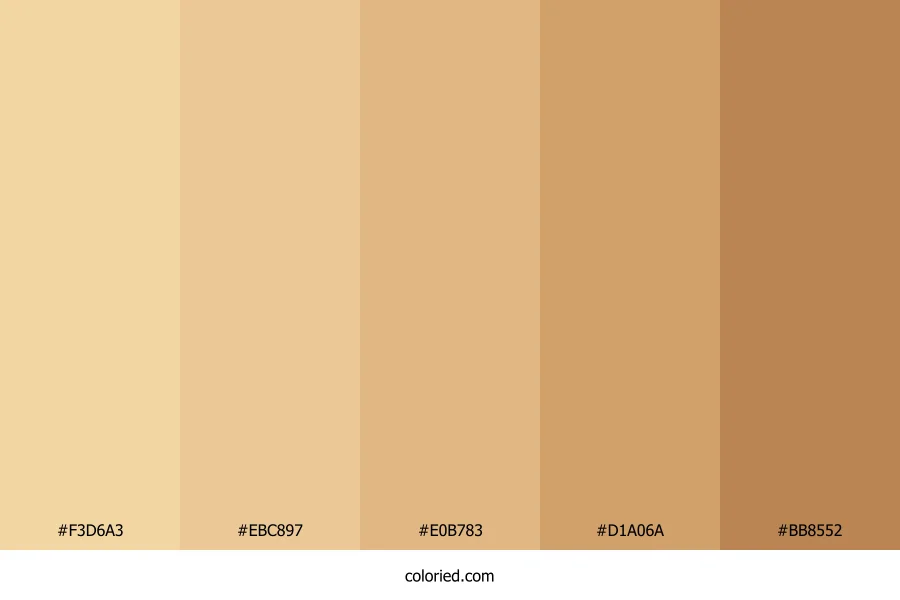 | #EBC897 | 235, 200, 151 | 35, 68%, 76% | 0%, 15%, 36%, 8% | oklch(0.851 0.075 76) | |