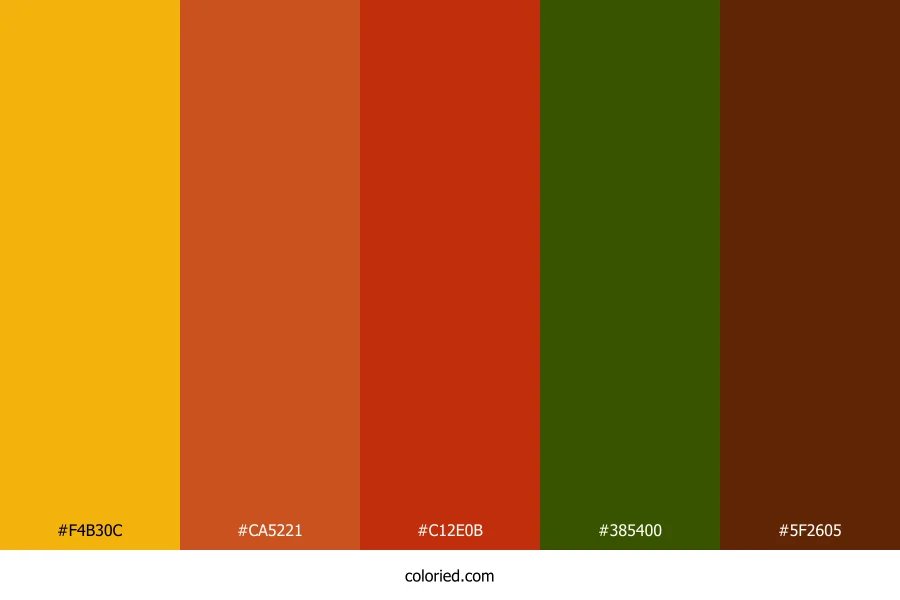| #5F2605 | 95, 38, 5 | 22, 90%, 20% | 0%, 60%, 95%, 63% | oklch(0.346 0.093 45) |
