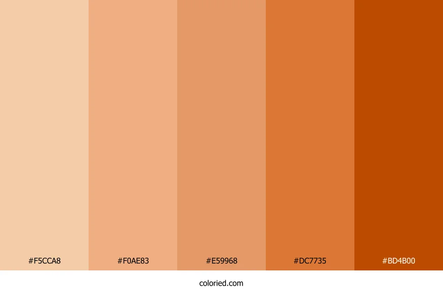 | #E59968 | 229, 153, 104 | 24, 71%, 65% | 0%, 33%, 55%, 10% | oklch(0.748 0.112 53) | |