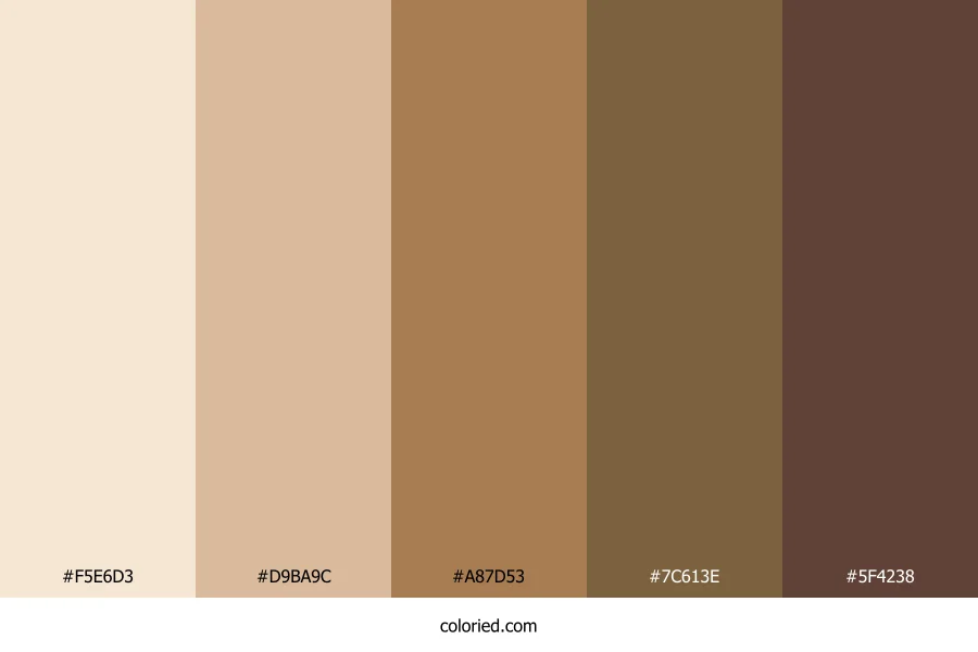 | #A87D53 | 168, 125, 83 | 30, 34%, 49% | 0%, 26%, 51%, 34% | oklch(0.622 0.078 65) | |