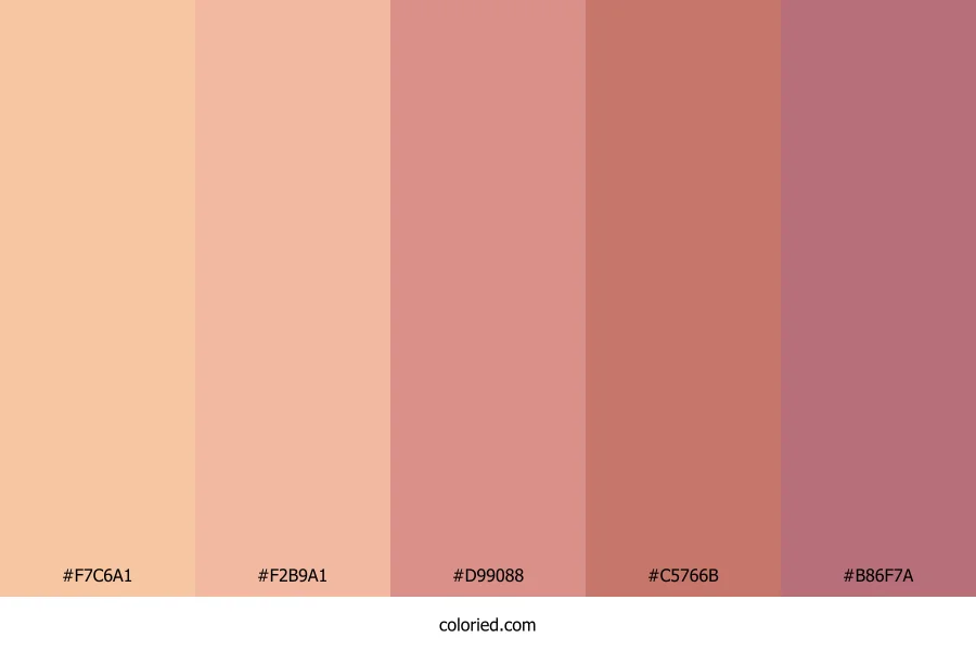 | #D99088 | 217, 144, 136 | 6, 52%, 69% | 0%, 34%, 37%, 15% | oklch(0.725 0.090 26) | |