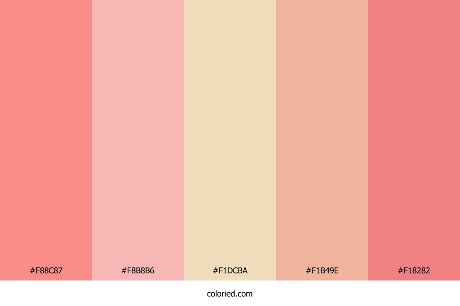 | #F18282 | 241, 130, 130 | 0, 80%, 73% | 0%, 46%, 46%, 5% | oklch(0.729 0.136 21) |