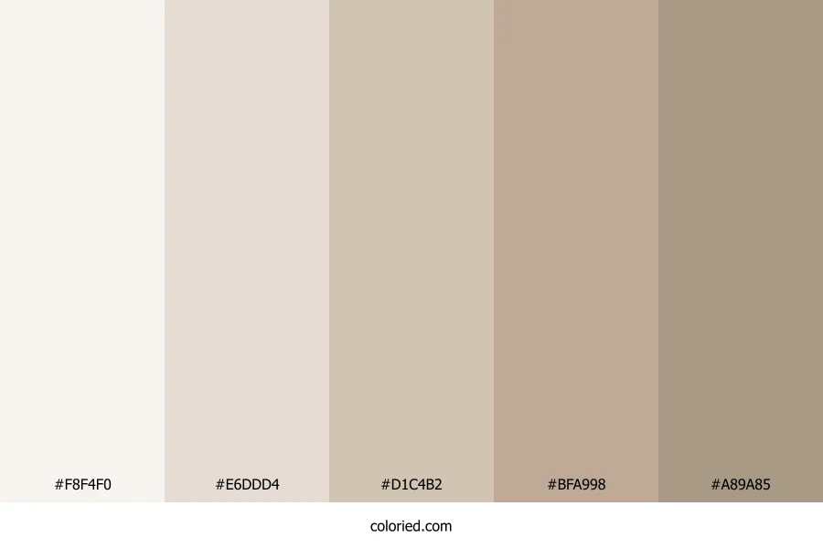 | #BFA998 | 191, 169, 152 | 26, 23%, 67% | 0%, 12%, 20%, 25% | oklch(0.749 0.035 60) | |