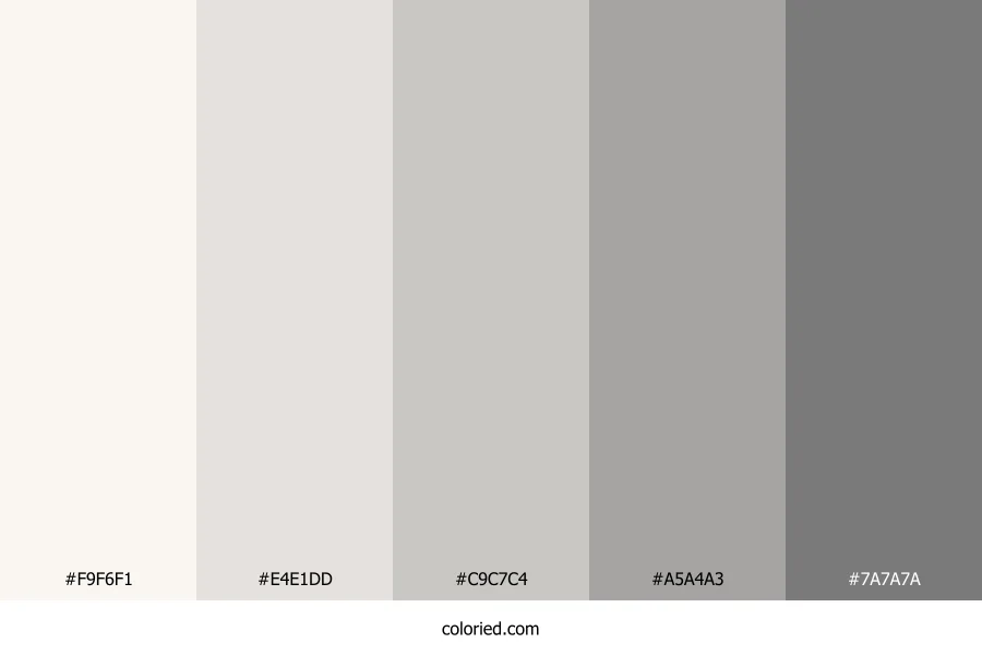 | #E4E1DD | 228, 225, 221 | 34, 11%, 88% | 0%, 1%, 3%, 11% | oklch(0.911 0.006 75) | |