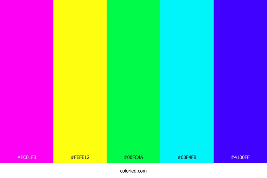 ![]() | #FC01F3 | 252, 1, 243 | 302, 99%, 50% | 0%, 100%, 4%, 1% | oklch(0.690 0.314 330) |