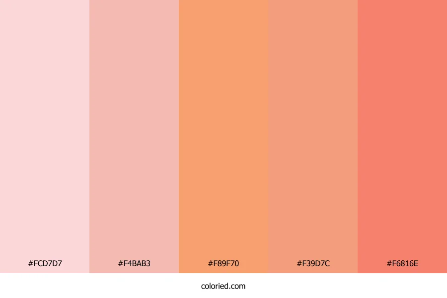| #F89F70 | 248, 159, 112 | 21, 91%, 71% | 0%, 36%, 55%, 3% | oklch(0.782 0.123 48) | |