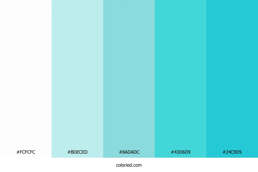 | #BDECED | 189, 236, 237 | 181, 57%, 84% | 20%, 0%, 0%, 7% | oklch(0.911 0.048 198) | |