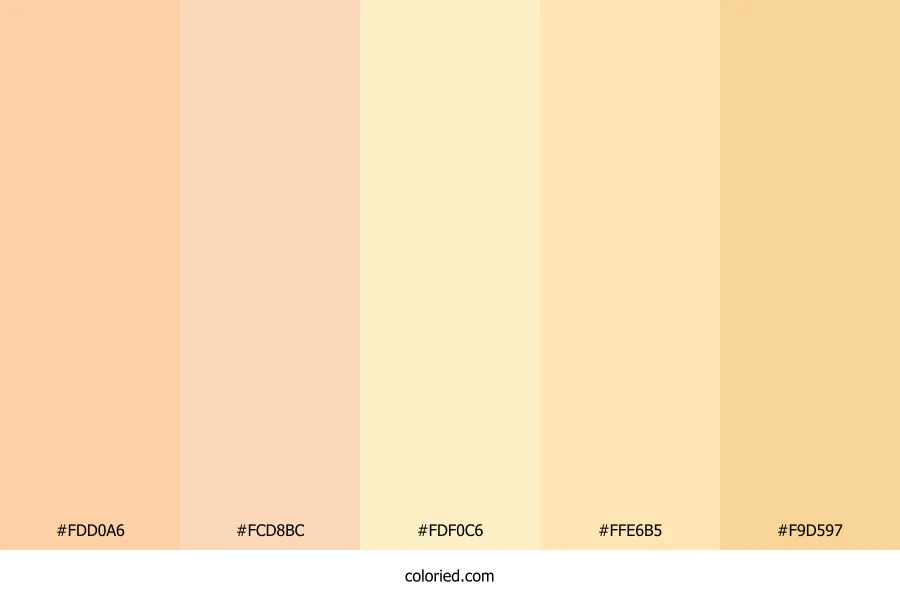 | #F9D597 | 249, 213, 151 | 38, 89%, 78% | 0%, 14%, 39%, 2% | oklch(0.889 0.088 81) |