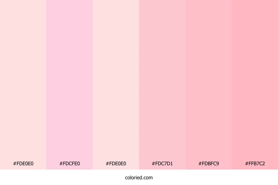 | #FDBFC9 | 253, 191, 201 | 350, 94%, 87% | 0%, 25%, 21%, 1% | oklch(0.863 0.072 8) | |