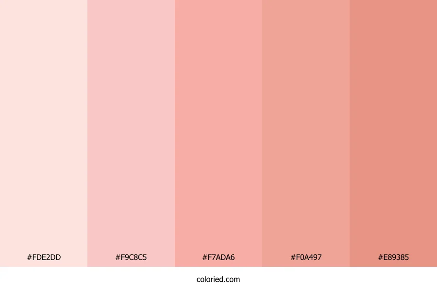 | #E89385 | 232, 147, 133 | 8, 68%, 72% | 0%, 37%, 43%, 9% | oklch(0.747 0.106 30) |
