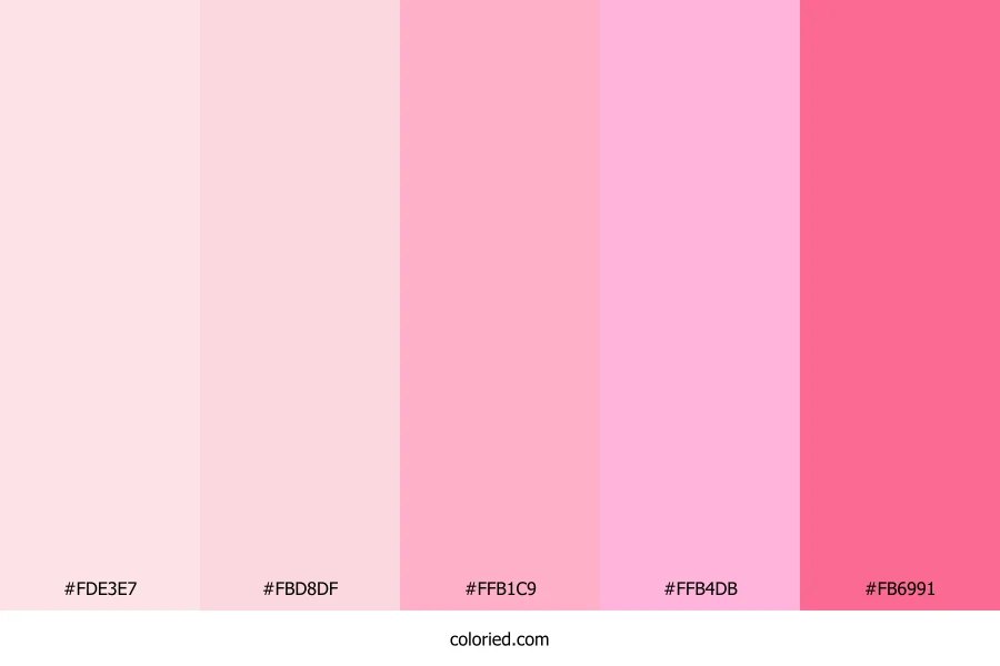 | #FBD8DF | 251, 216, 223 | 348, 81%, 92% | 0%, 14%, 11%, 2% | oklch(0.913 0.040 4) | |