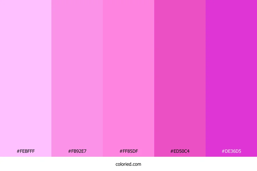 | #DE36D5 | 222, 54, 213 | 303, 72%, 54% | 0%, 76%, 4%, 13% | oklch(0.647 0.258 330) |