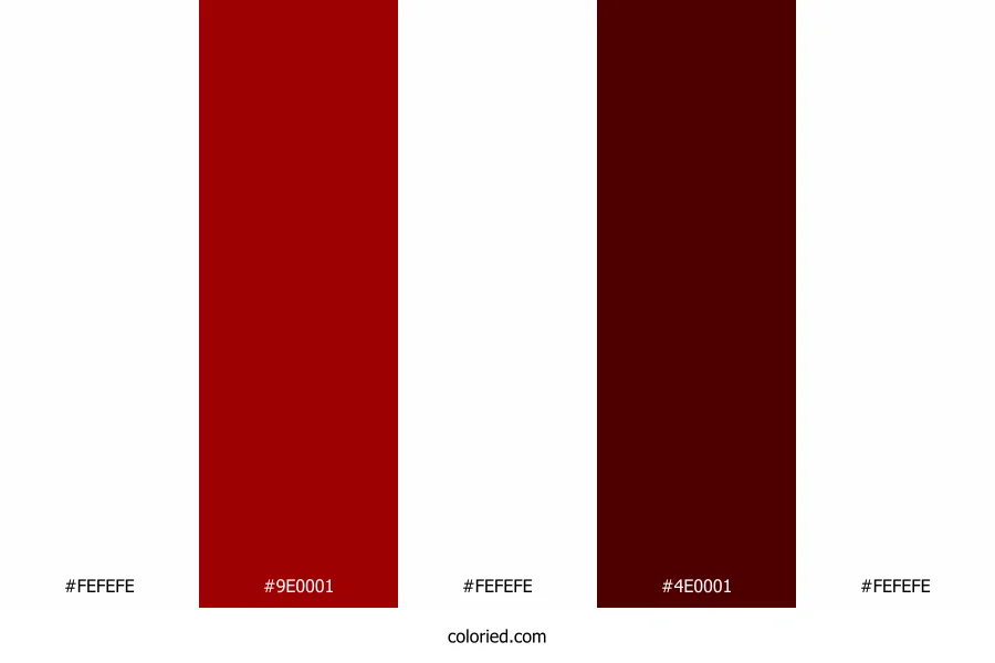 | #9E0001 | 158, 0, 1 | 360, 100%, 31% | 0%, 100%, 99%, 38% | oklch(0.439 0.180 29) | |