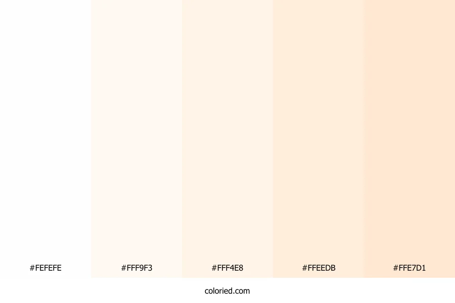 | #FFEEDB | 255, 238, 219 | 32, 100%, 93% | 0%, 7%, 14%, 0% | oklch(0.958 0.031 70) | |