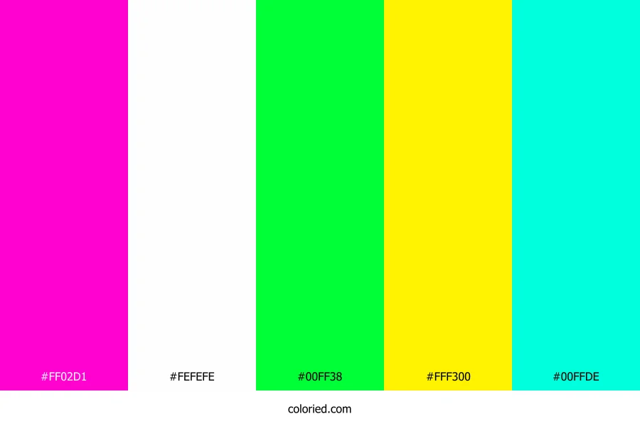 ![]() | #FF02D1 | 255, 2, 209 | 311, 100%, 50% | 0%, 99%, 18%, 0% | oklch(0.677 0.295 339) |