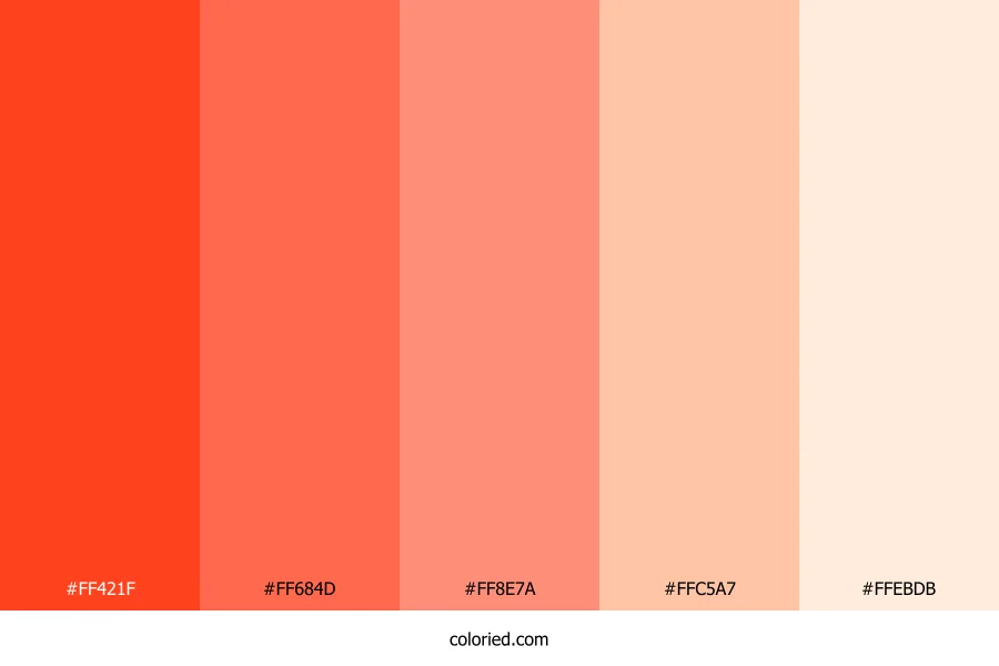 ![]() | #FF421F | 255, 66, 31 | 9, 100%, 56% | 0%, 74%, 88%, 0% | oklch(0.659 0.229 32) |