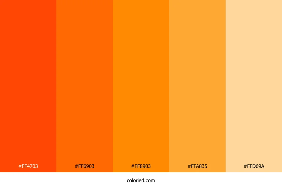 | #FF6903 | 255, 105, 3 | 24, 100%, 51% | 0%, 59%, 99%, 0% | oklch(0.700 0.202 44) | |