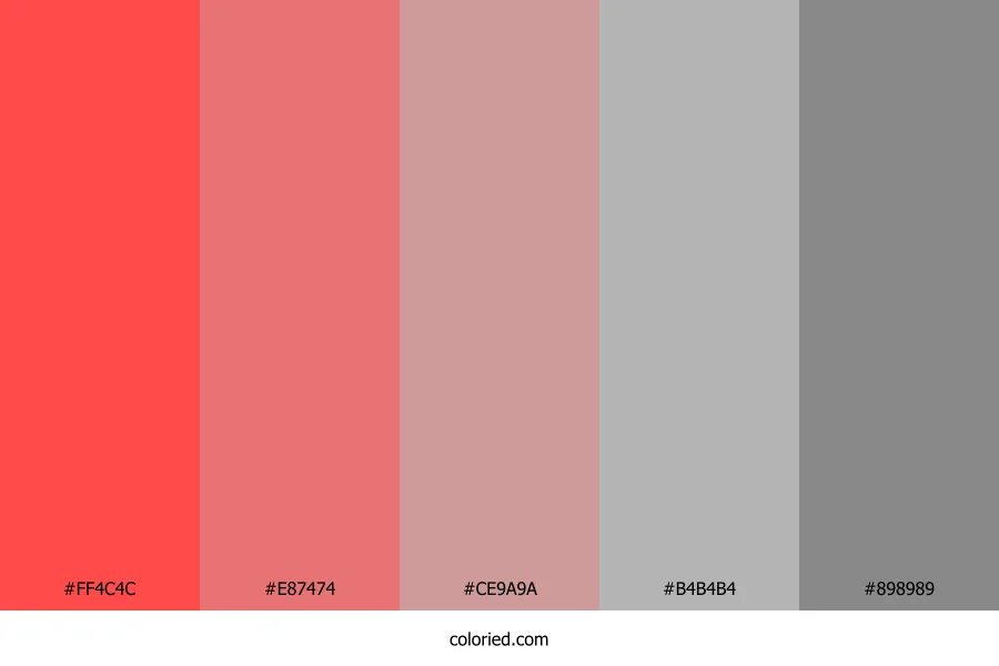 | #E87474 | 232, 116, 116 | 0, 72%, 68% | 0%, 50%, 50%, 9% | oklch(0.693 0.144 21) | |