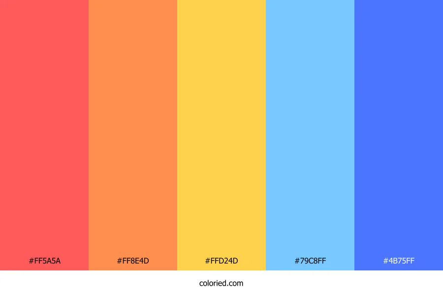 ![]() | #FF5A5A | 255, 90, 90 | 0, 100%, 68% | 0%, 65%, 65%, 0% | oklch(0.688 0.201 24) |