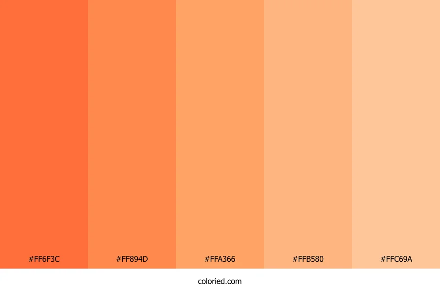 ![]() | #FF6F3C | 255, 111, 60 | 16, 100%, 62% | 0%, 56%, 76%, 0% | oklch(0.710 0.187 39) |