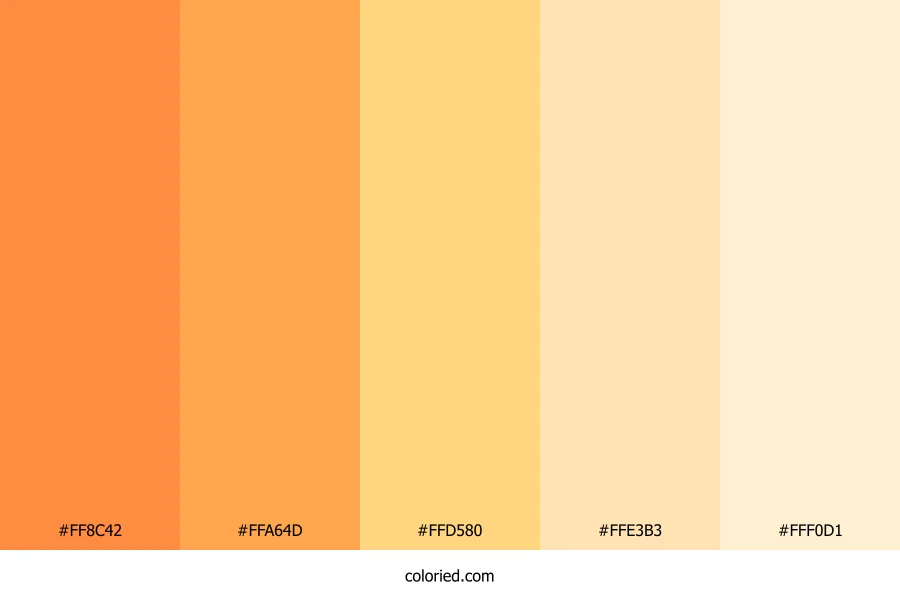 | #FFF0D1 | 255, 240, 209 | 40, 100%, 91% | 0%, 6%, 18%, 0% | oklch(0.959 0.044 85) |