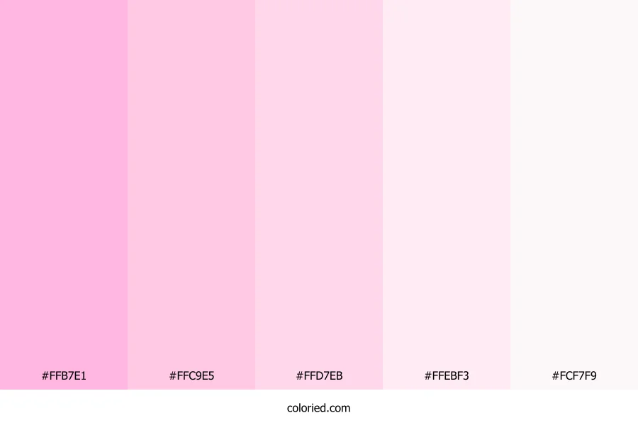 ![]() | #FFB7E1 | 255, 183, 225 | 325, 100%, 86% | 0%, 28%, 12%, 0% | oklch(0.859 0.098 343) |