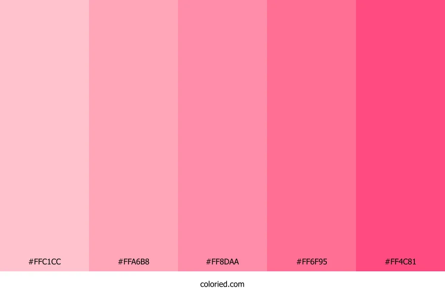 ![]() | #FFC1CC | 255, 193, 204 | 349, 100%, 88% | 0%, 24%, 20%, 0% | oklch(0.870 0.072 7) |